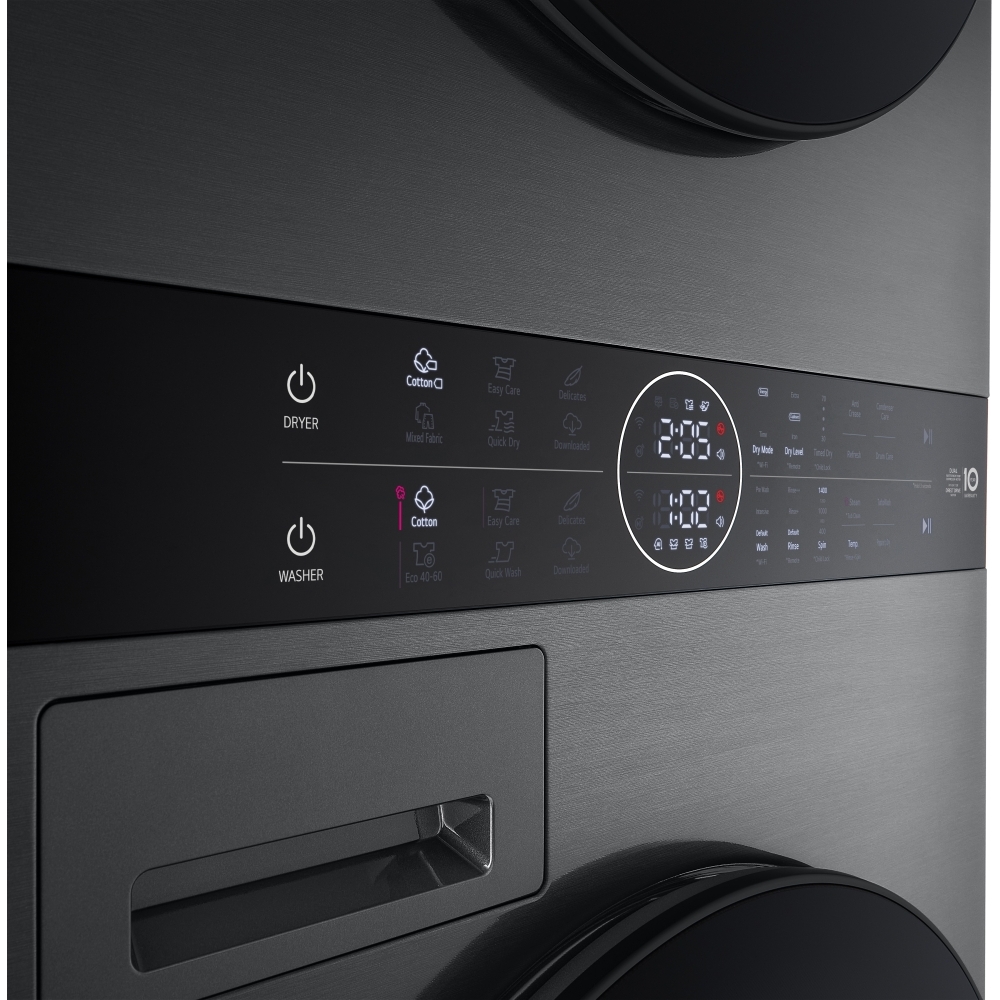 Designed and innovated from the ground up, the one-piece washer and dryer LG WashTowerâ„¢ is here to make your laundry room dreams come true. The easy reach Center Controlâ„¢ operates both appliances, while AI is on hand to offer improved fabric care. And for those busy users you can wash and dry in as little as 59 minutes!