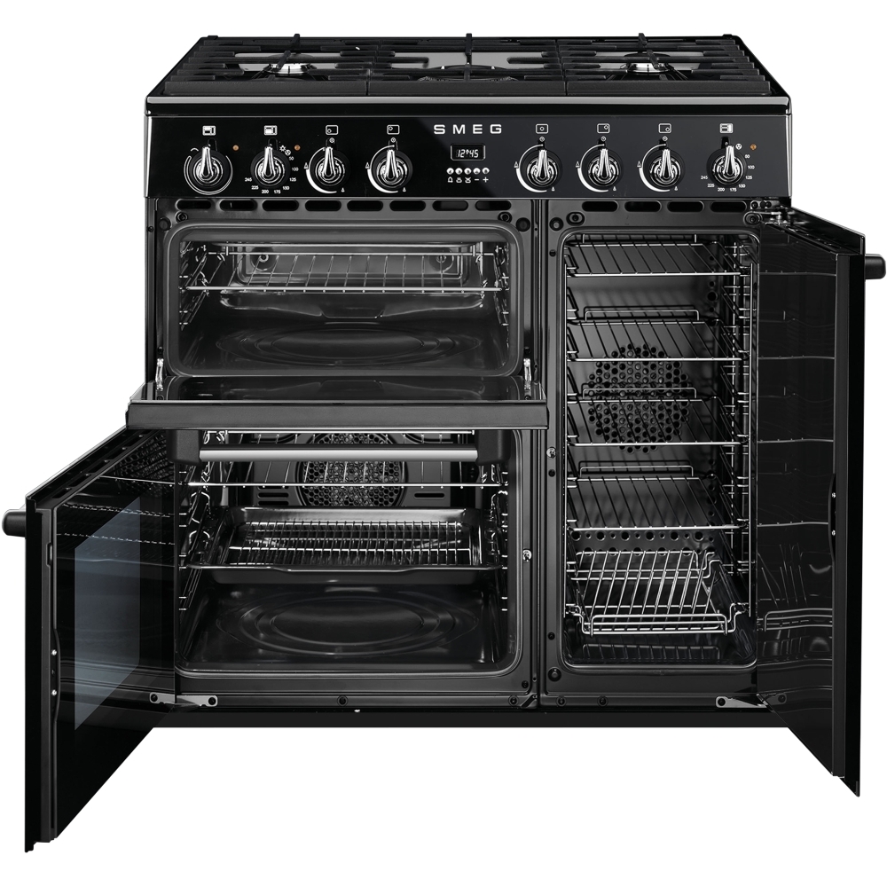 Spacious and versatile cooker perfect for preparing several dishes at once, equipped with electric ovens and a gas hob: efficient and responsive, the visible heat source allows total control and the choice of the right intensity.